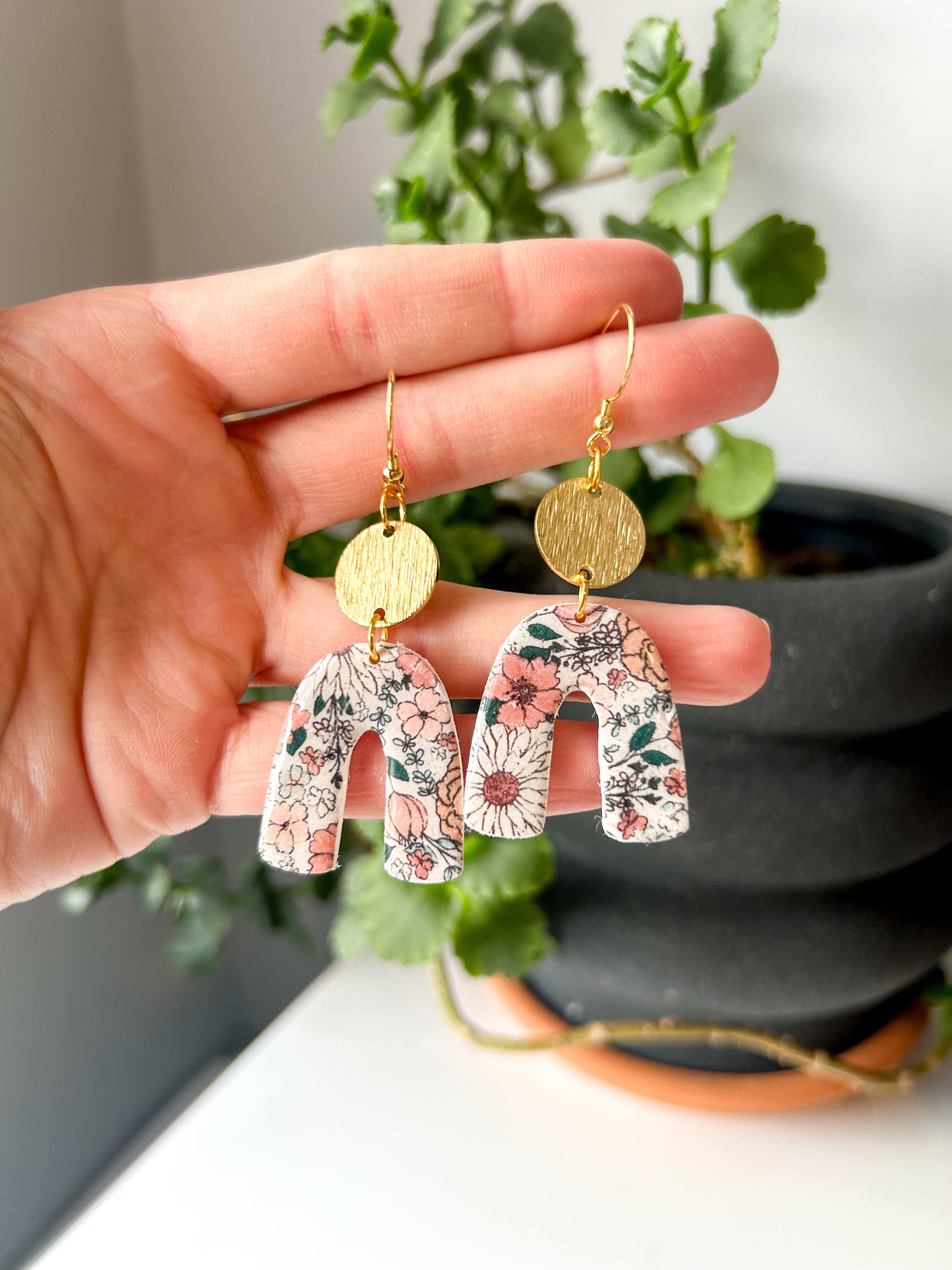 Hypoallergenic, gold plated stainless steel hooks. Design is coated in resin for shine.