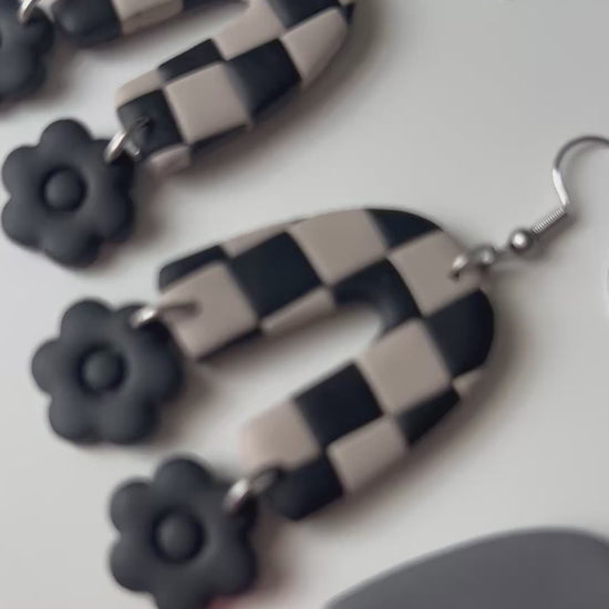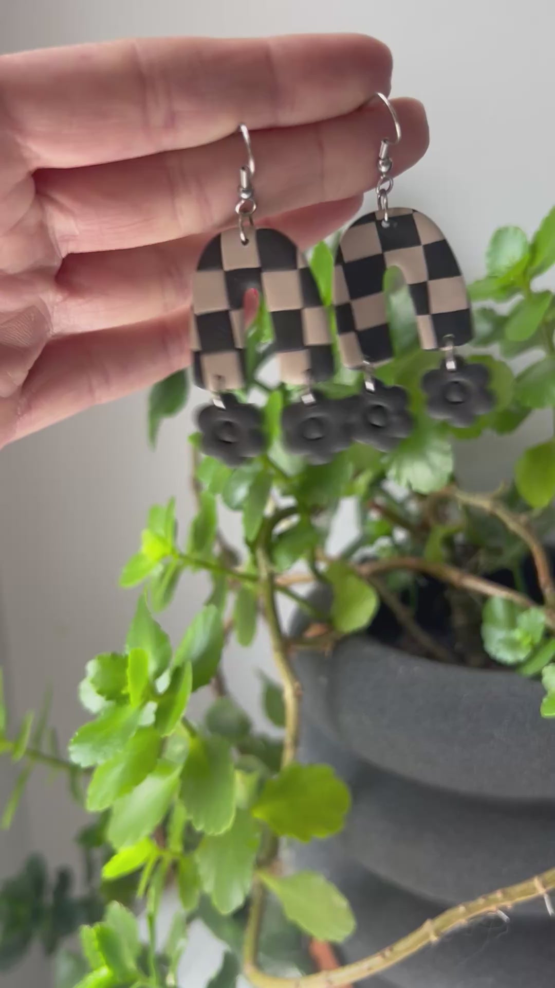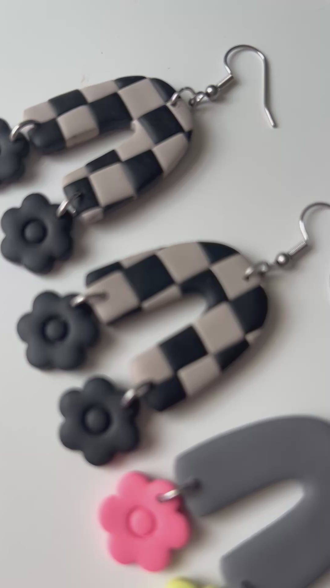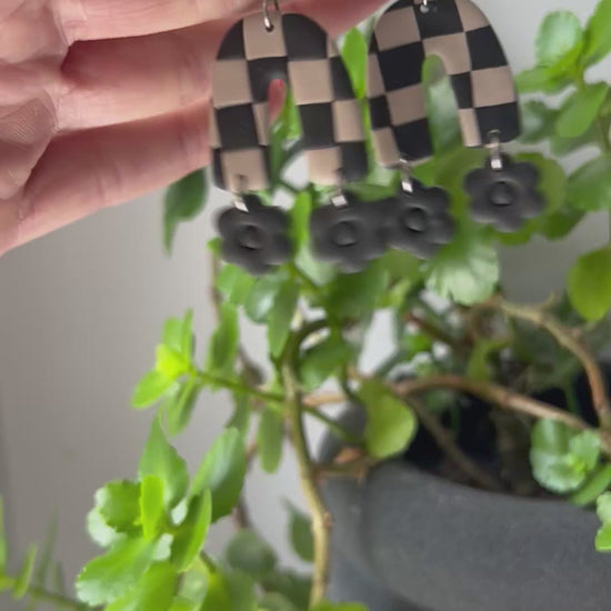 Last Fall, I made the black and cream checker arches with deep fall toned flowers. This time the flowers are black, And I made separate arches with bright Summer colors! The hooks are hypoallergenic stainless steel.