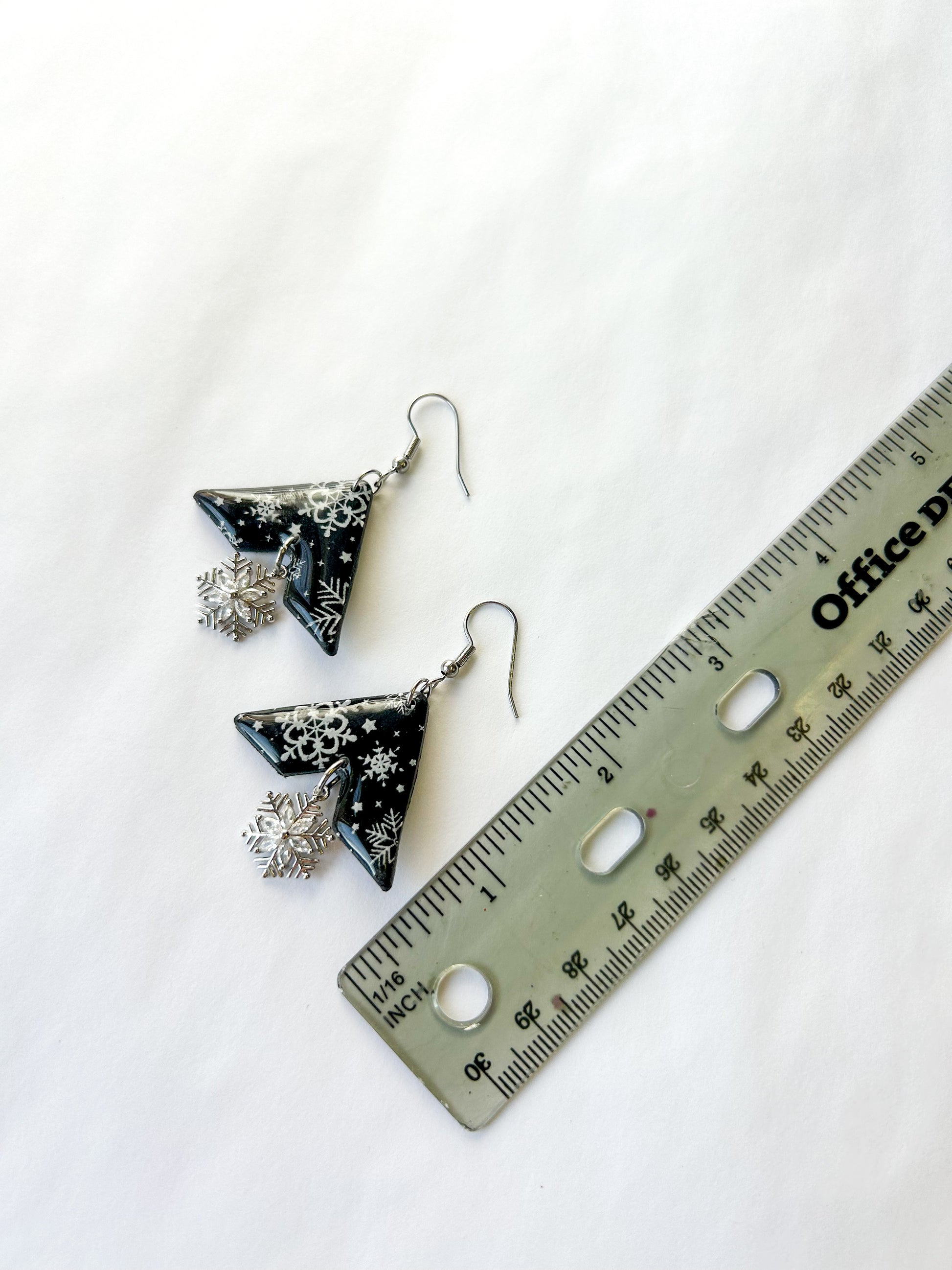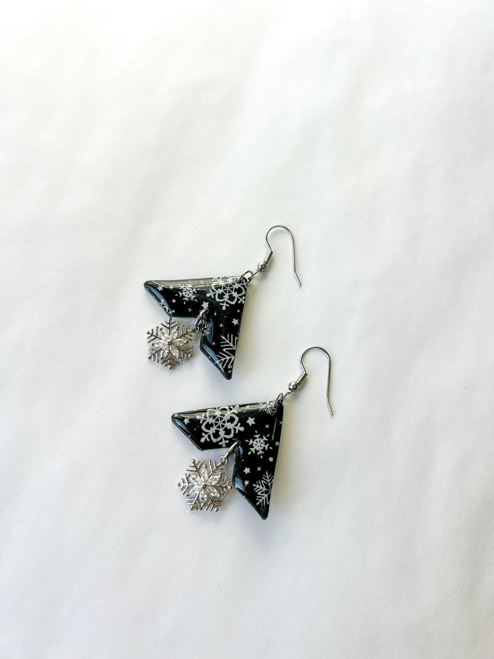 Hypoallergenic, gold, plated stainless steel ball posts. Cubic zirconia, snowflake charm.